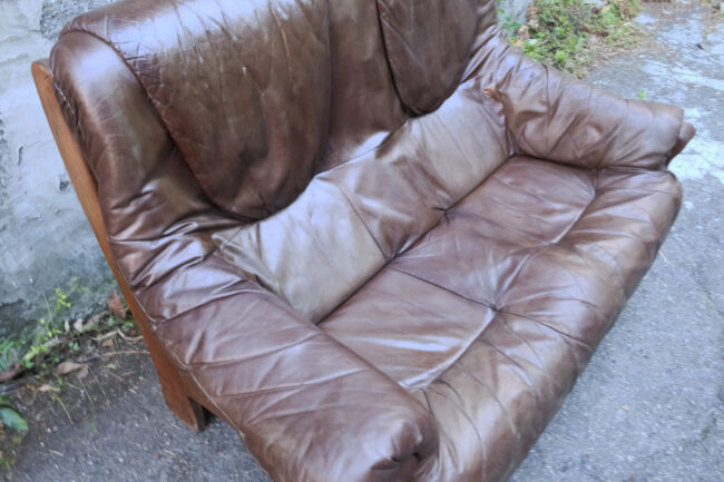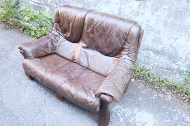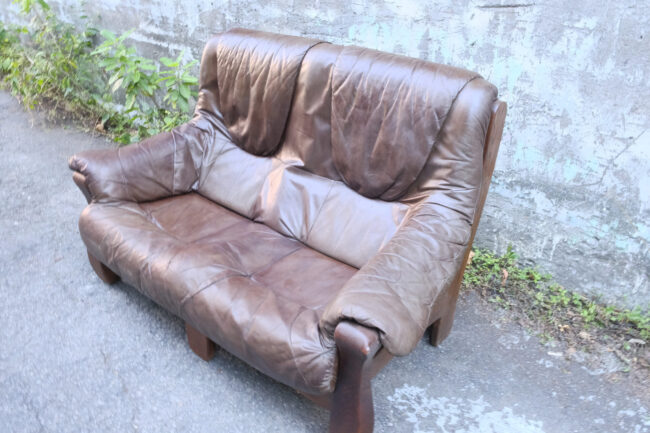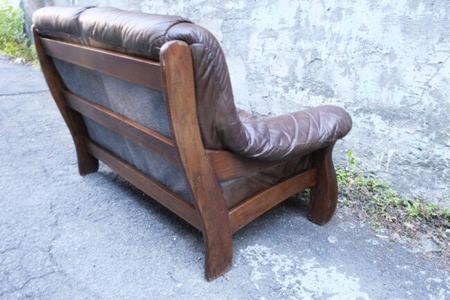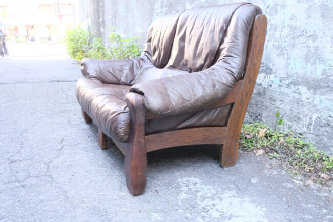 坐99-法國實木 巴西風 野獸派 牛皮高背 雙人沙發 俱樂部椅