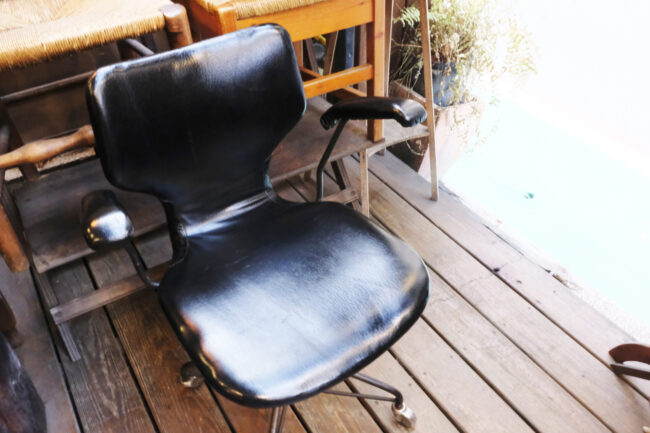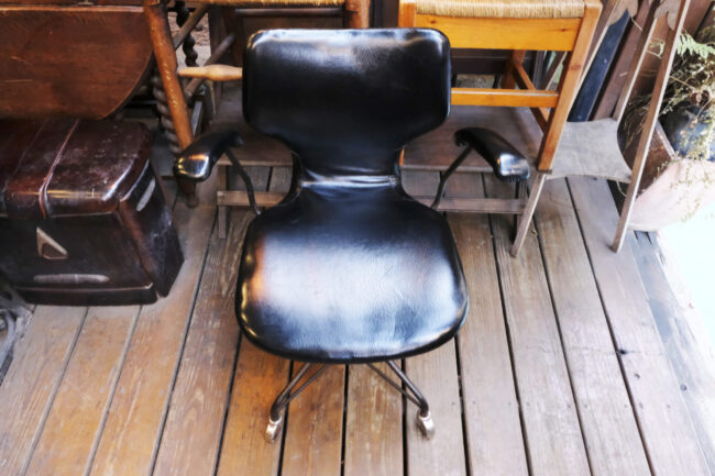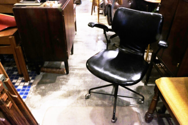 椅-日本 劍持勇 Isamu Kenmochi  天童木工 Tendo Mokko 扶手旋轉辦公椅 黑色牛皮款