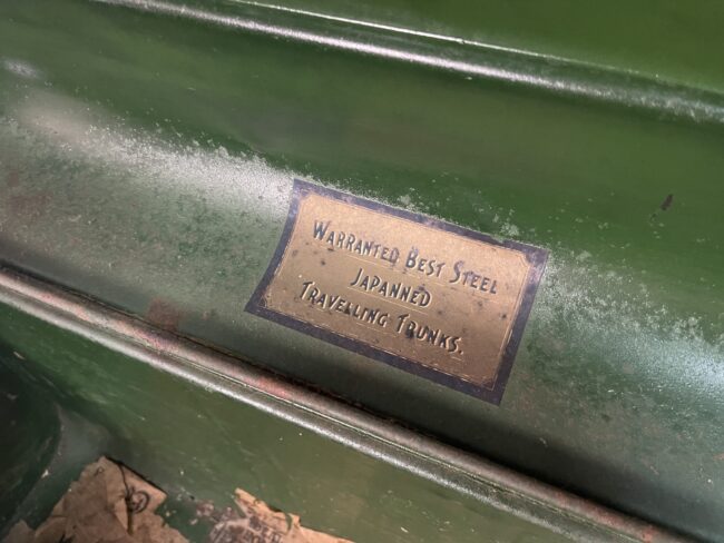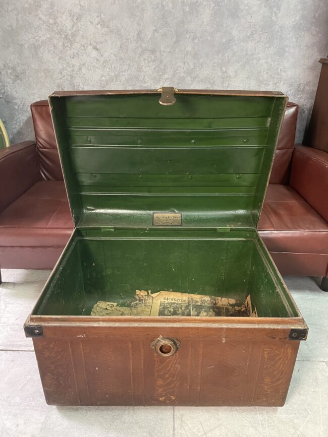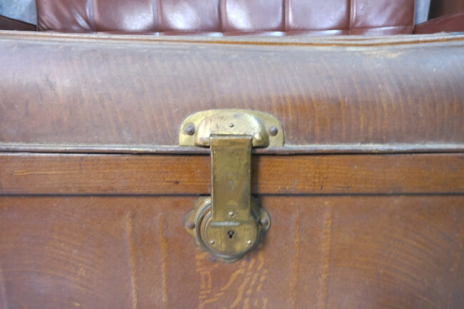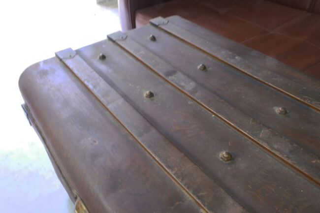 飾-英國古董紅銅卯丁木條大型旅行箱 可當咖啡桌 茶几